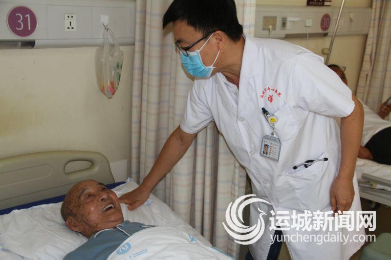 面对前来查房的结直肠肛门外科主任姚占胜,摆脱病魔的老人露出了笑容。