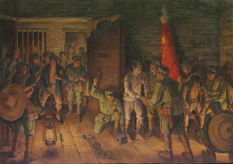 1950年,画家胡一川为解放全中国献身的革命先烈创作了油画《开镣》。