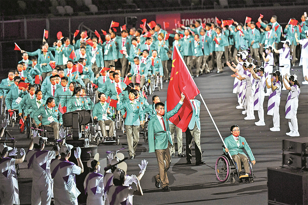 8月24日,第16届夏季残疾人奥林匹克运动会开幕式在日本东京举行。 这是中国体育代表团入场。 新华社记者 胡虎虎 摄