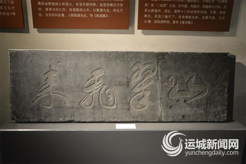 永济市博物馆收藏着一块清代石质匾额,匾额上行云流水书写着4个神采灵动的大字——山翠飞来。这个匾额的作者不是别人,正是清初著名诗人吴雯。因其字飘然出尘、意态不俗,运城市在修复盐池东禁门时,将这4个字嵌在了东禁门门额之上。恰好,东禁门朝向中条山,出门南望亦可望见翠色浮现,所以也很应景。