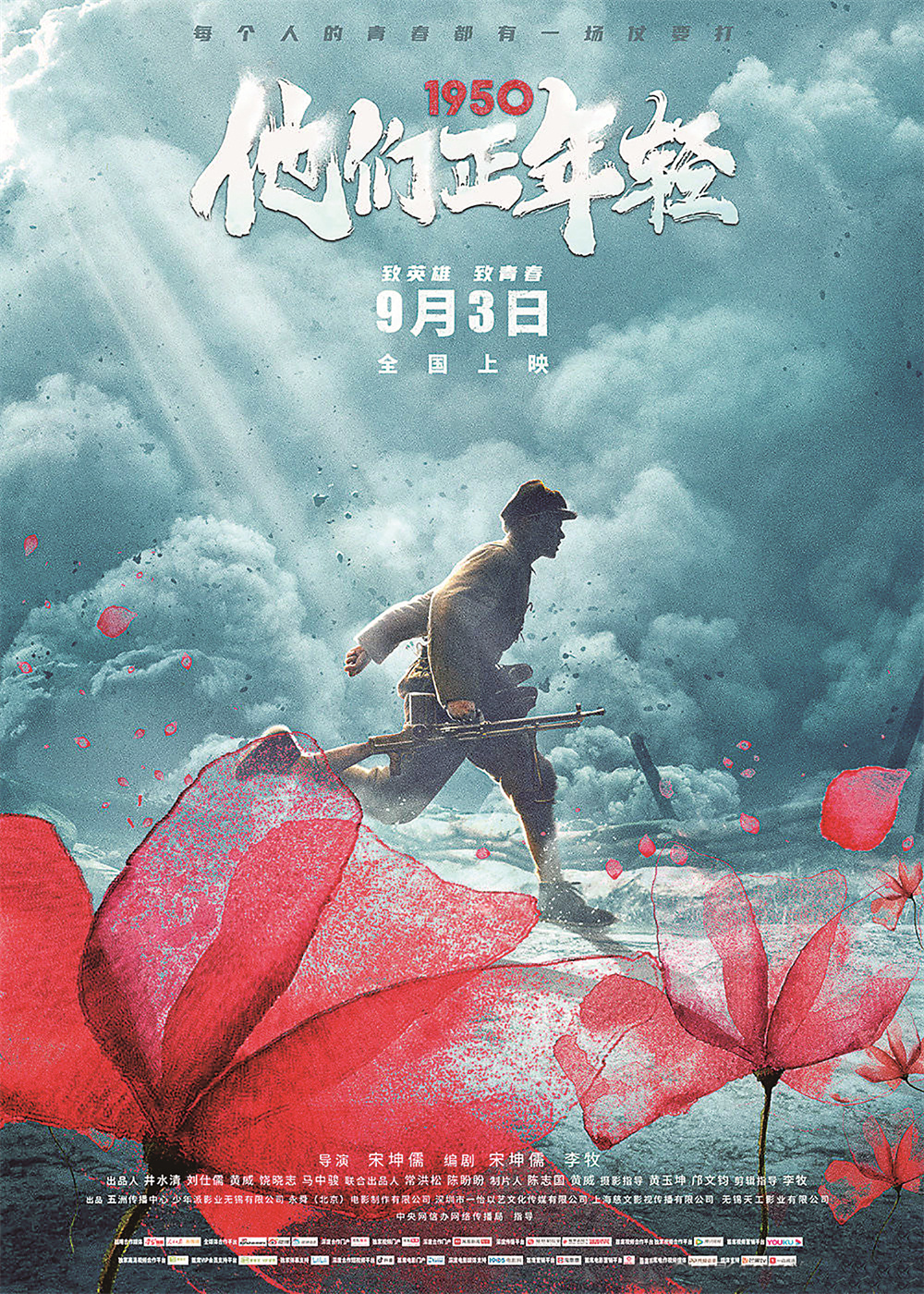 抗美援朝老兵纪录电影《1950他们正年轻》将于9月3日上映。导演宋坤儒表示:“9月2日,第八批在韩志愿军烈士遗骸归国,9月3日,我们谨以此片,致敬最可爱的人!”