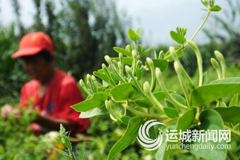 8月21日,新绛县泽掌镇吴岭庄村村民在采收金银花。