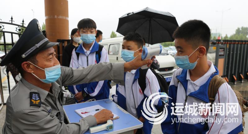 8月30日,夏县实验中学开学日,1700余名学生冒雨按时返校。 针对当前疫情防控形势,该校分年级、班次,按时间节点组织学生有序返校。学生佩戴口罩,出示行程卡、健康码、疫苗接种证明,并进行体温测量后进入校园,教师、宿管员冒雨为学生搬运行李等生活用品。