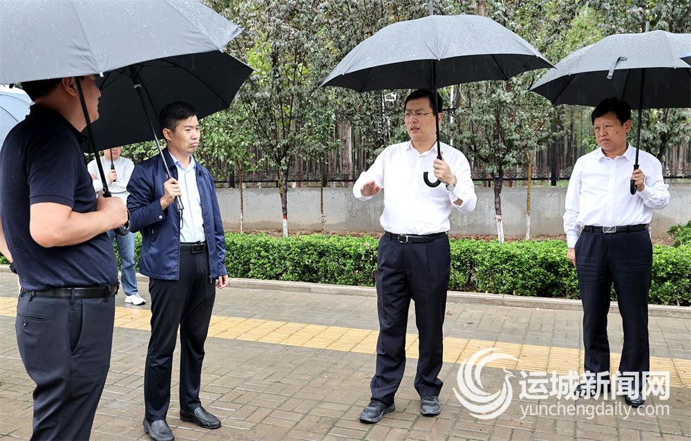 本报讯(记者 王文军)8月31日,市委书记丁小强在运城经济技术开发区调研检查城市防洪排涝工作,并主持召开座谈会,现场会商解决城市防洪排涝能力不足问题。他强调,要坚持人民城市为人民,把开展城区渍水点专项整治作为“我为群众办实事”实践活动的重要内容之一,长短结合、综合施策,清单化、项目化解决渍水点问题,全面提升城市防洪排涝能力,助推城市高质量发展。市委常委、秘书长乔登州参加。