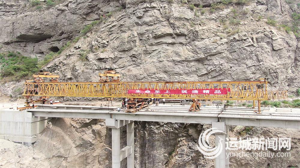 8月16日,黄河一号旅游公路(河津段)“乡宁至龙门段”工程莫底沟大桥正在进行T梁吊装。 史甜甜 摄