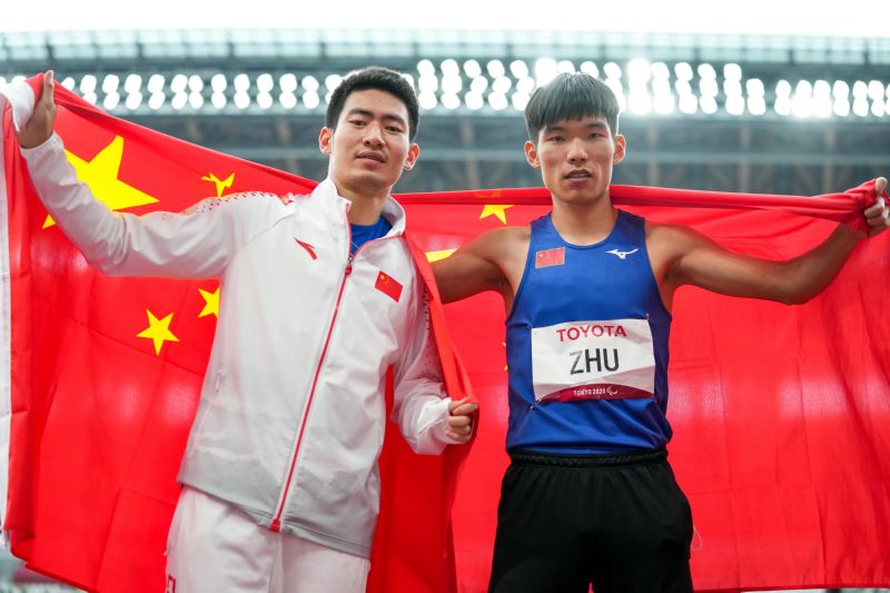 当日,在东京残奥会男子跳远T38级决赛中,中国选手朱德宁以7米31打破世界纪录获得冠军,另一位中国选手衷黄浩获得亚军。 新华社记者 张铖 摄