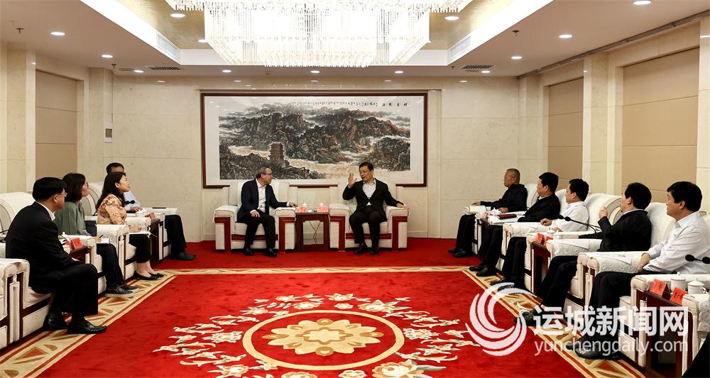 丁小强代表市委、市政府对周辉东一行来运考察表示欢迎,对建设银行山西省分行多年来给予运城经济社会发展的大力支持表示感谢。丁小强指出,运城是中华文明重要发祥地之一,系山西粮仓、晋南门户,区位优越、交通便利,产业门类齐全、结构完备。去年以来,运城深入贯彻落实习近平总书记视察山西重要讲话重要指示精神,坚决贯彻党中央和省委决策部署,立足新发展阶段,贯彻新发展理念,积极融入新发展格局,各项主要经济指标位列全省第一方阵。今年上半年,全市经济延续了去年的良好态势,各项指标继续全线飘红,跑出了高质量发展的加速度。当前,全市上下正深入学习贯彻习近平总书记“七一”重要讲话精神,紧扣“十四五”发展目标,围绕“一区两城三强市三高地”目标定位,培育壮大“415”十大工业产业集群,大力培育新兴产业,改造提升传统产业,持续创优营商环境,聚力打造区域性创新、消费、教育、医疗中心。实现这些目标任务,既需要内生动力,更离不开金融机构的大力支持。希望建设银行山西省分行继续给予运城更多支持,强化项目对接,加大贷款投放力度,为运城重点工程、重点项目建设提供强有力金融保障。市委、市政府将进一步优化金融生态环境,加快诚信体系建设,及时推送需要金融支持的好项目、大项目,共享合作发展新机遇,实现互惠互利、共同发展。