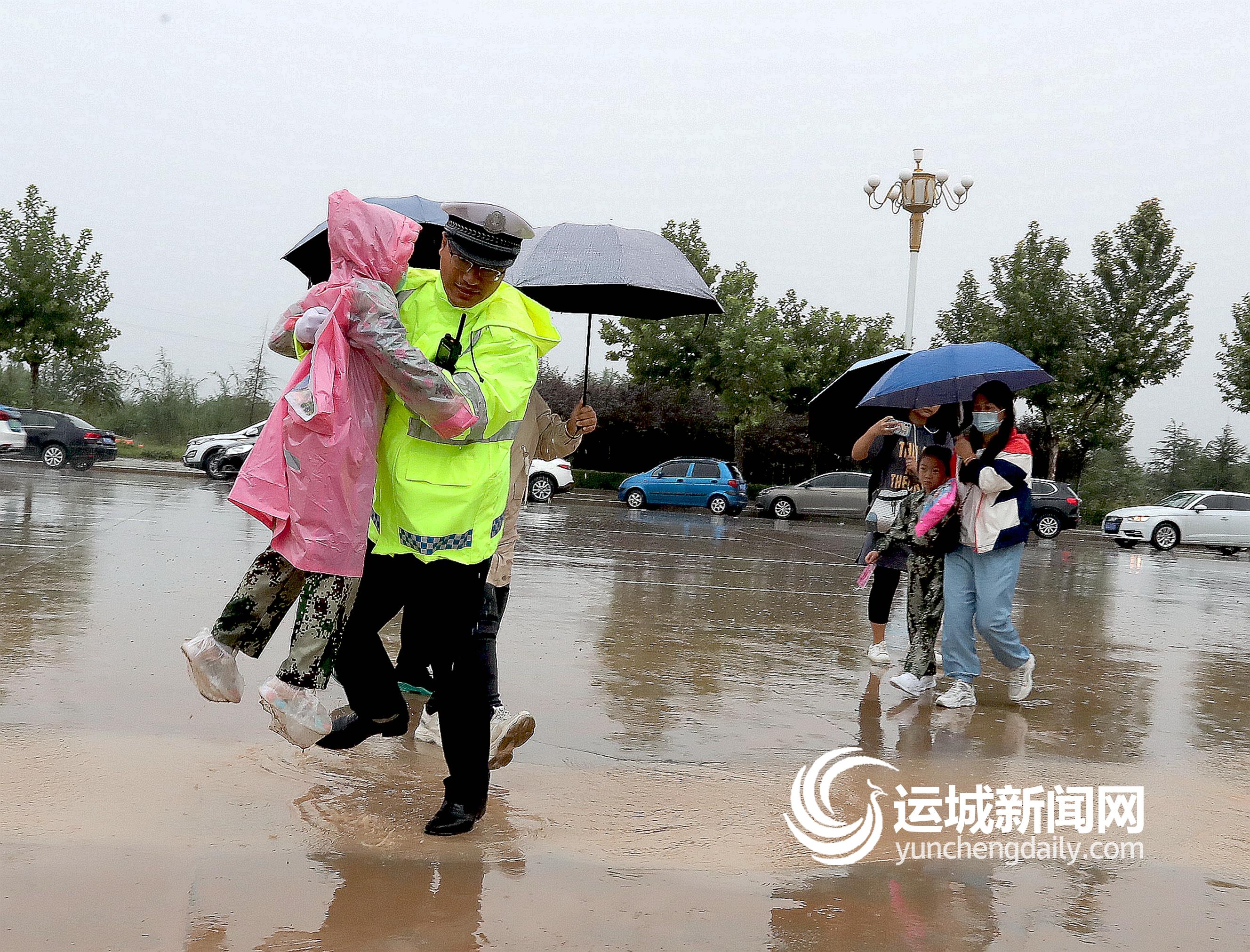 在秋雨绵绵中,芮城县学府东街小学迎来开学季。芮城公安执勤人员提前到达各执勤点,冒雨坚守岗位,对接送车辆、社会车辆进行有序疏导,护送学生安全过马路,并及时提醒驾驶人雨天注意交通安全、减速慢行,引导车辆有序停放,确保了学校门前及周边道路畅通,成为风雨中最美的一道风景线。