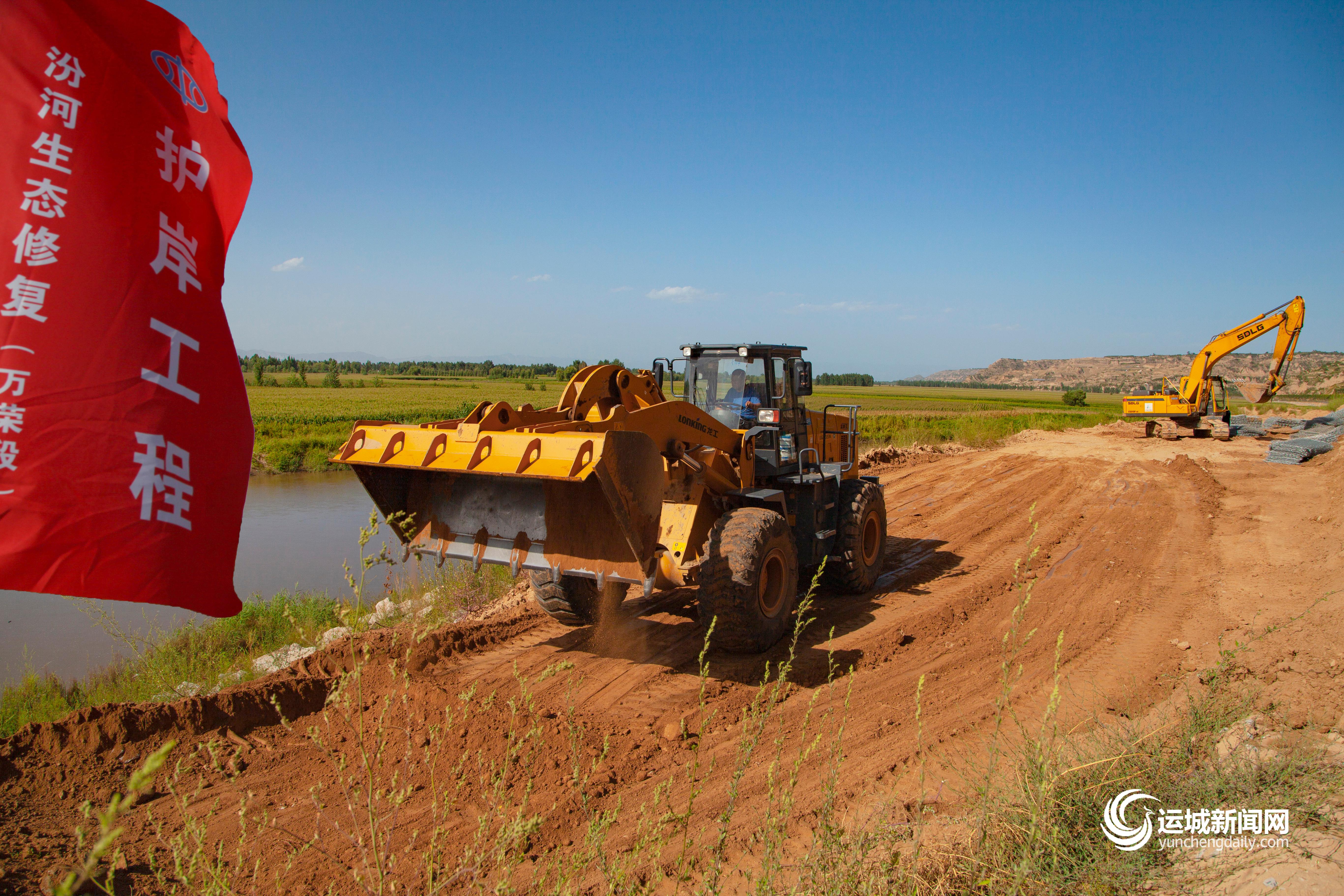 这是8月25日汾河生态修复(万荣段)护岸工程项目施工现场。