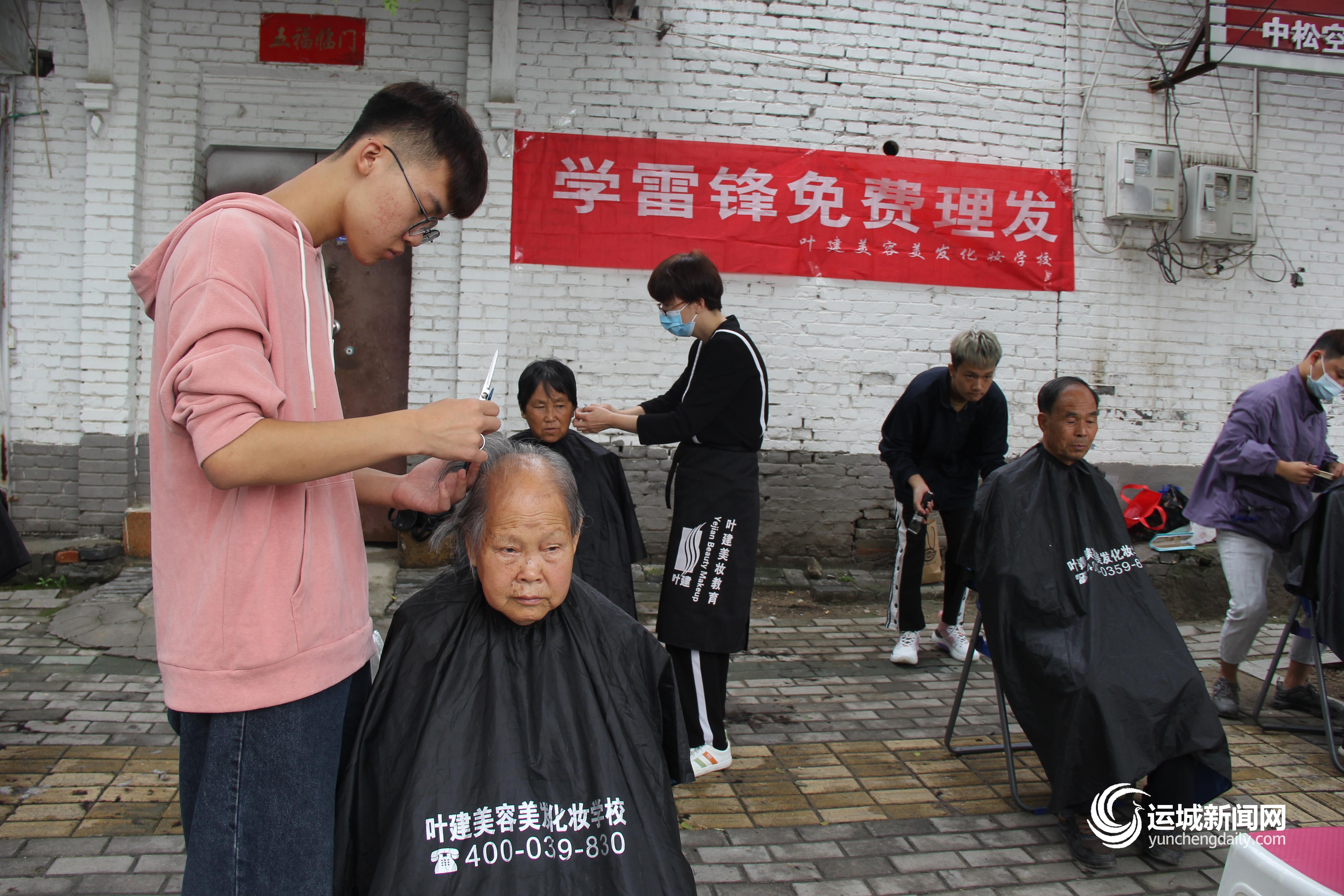 运城晚报讯(记者 杜磊)8月中旬以来,运城叶建美容美发学校的师生们坚持每天走上街头,为老人免费理发,给群众带来了实打实的方便。 9月2日,在市区西城墙街,记者看到这些学生们动作娴熟,他们一边为老人理发(上图),一边耐心询问老人对发型要求,还细心地为老人清理身上的碎发。