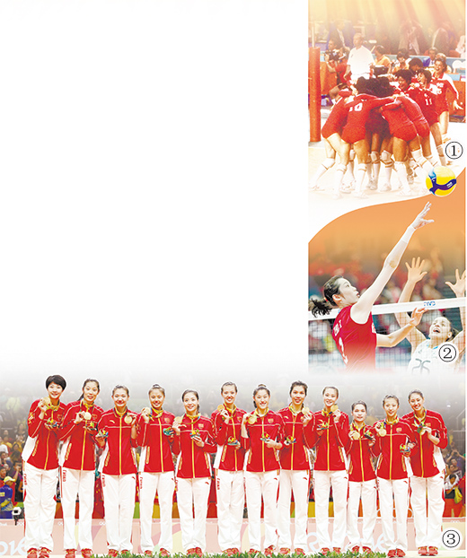 图③:中国女排在2016年里约奥运会站上最高领奖台。