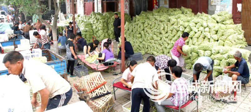 初秋时节,庙上乡道路两旁尽是忙碌的人群,运货车辆往来不断。农民们有的在分拣枣的大小,有的在装箱,有的在贴商标,有的在清点货款,一派忙碌的丰收景象。