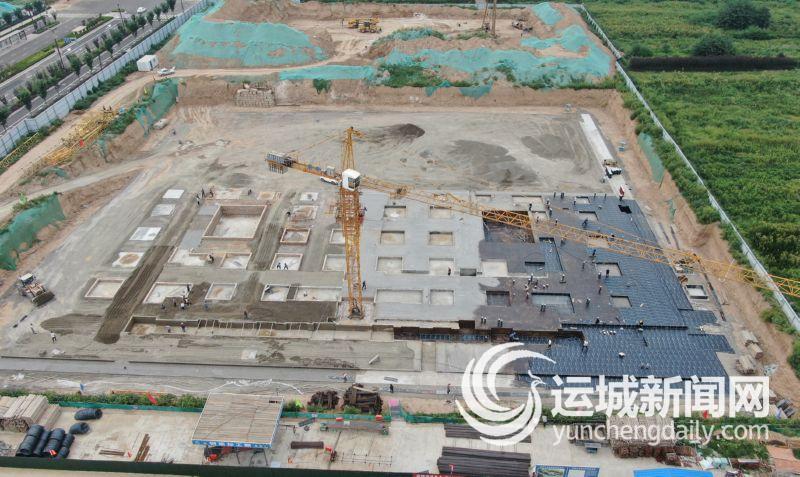 9月6日,河津市委党校建设项目现场,工人在加紧施工。