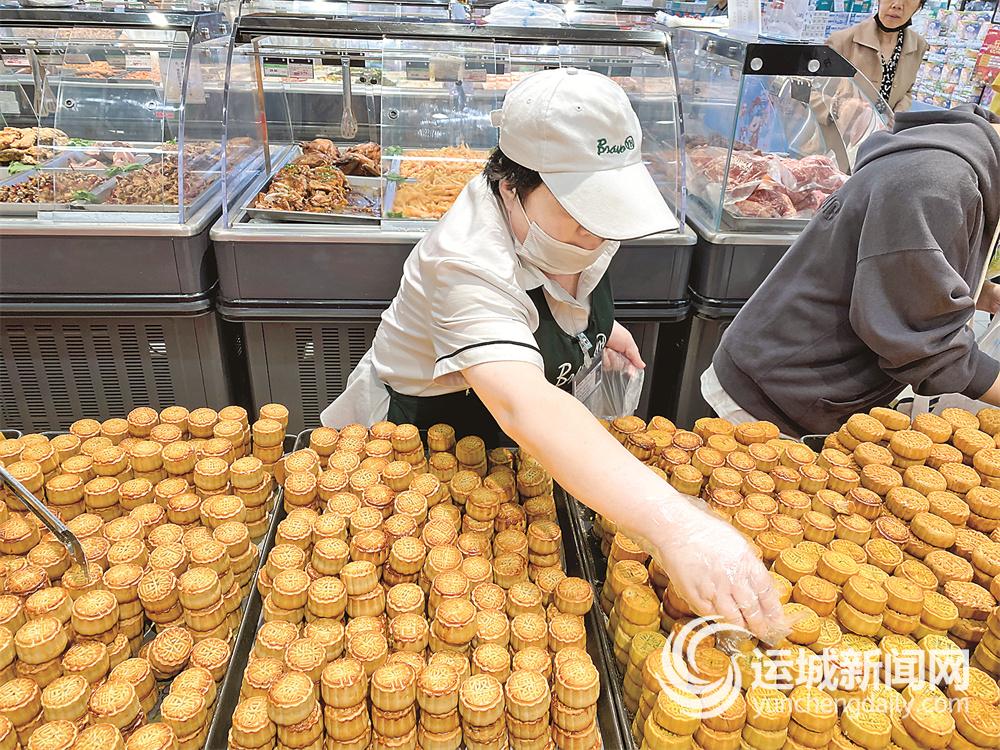 在市区永辉超市万达店,记者发现各类月饼都被摆在比较显眼的位置,光是月饼的品牌就有10余种,五仁、枣泥、豆沙、奶黄等咸甜口味一应俱全。