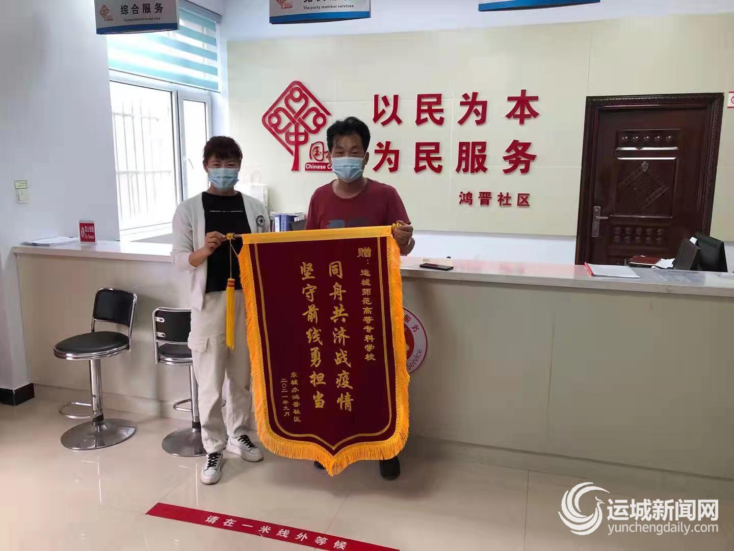 ▲9月1日,盐湖区东城街道鸿晋社区为运城师范高等专科学校颁发写有“同舟共济战疫情,坚守前线勇担当”的锦旗。同时,还为该校总务处工作人员程晋生和贾义泽颁发了“优秀志愿者”荣誉证书。 运城师范高等专科学校总务处留守老校区家属院的工作人员和在职党员,积极落实该校党委号召,在配合社区防疫工作、反诈骗工作和创建文明城市测评工作中表现突出。 贾智博 摄