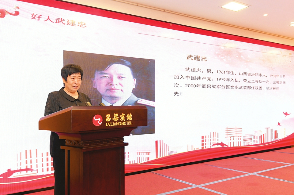 宣讲人郭爱贞讲述丈夫武建忠的感人故事。 刘亮亮 摄