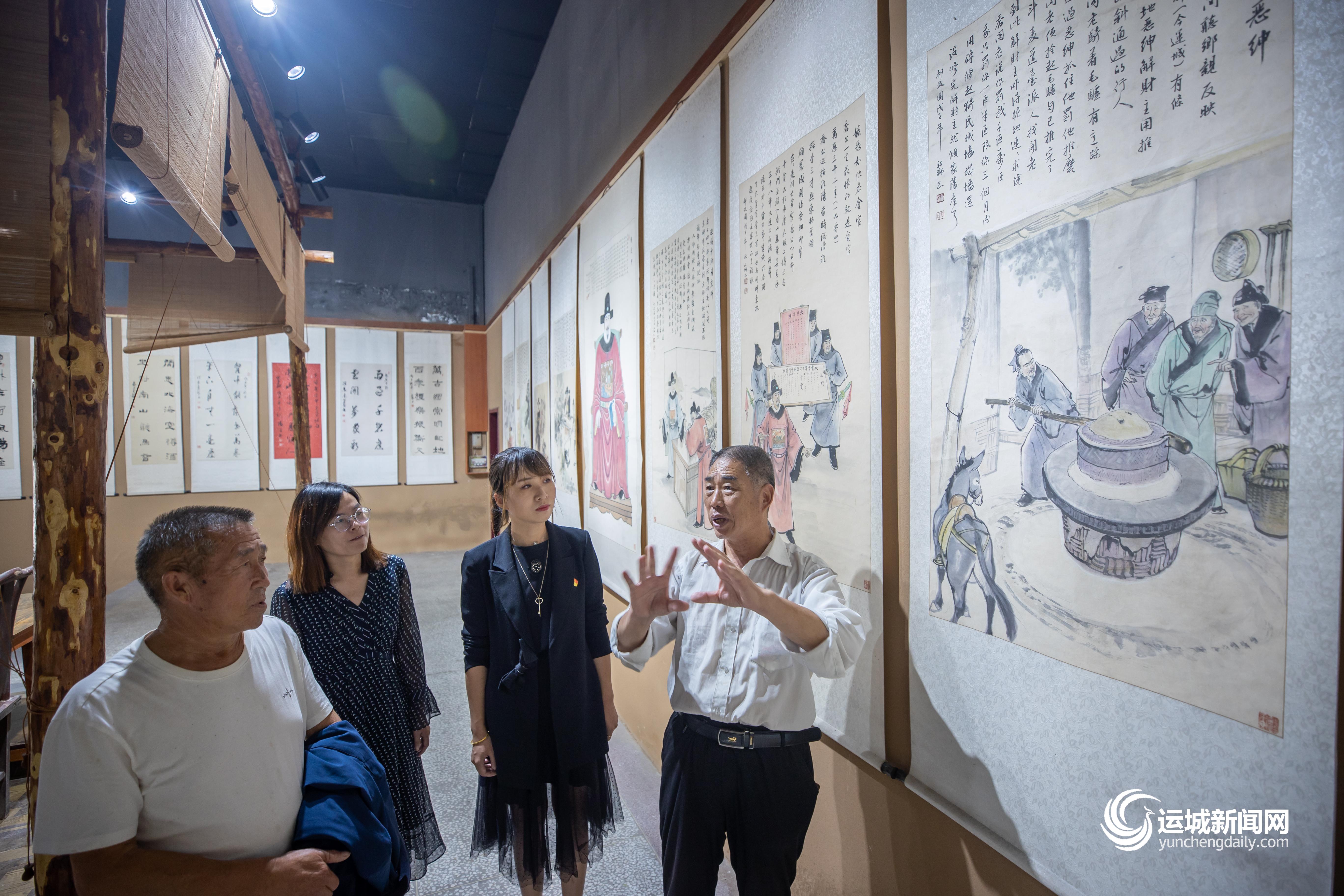 今年7月,村里对老旧的砖墙进行了整修粉刷。临猗县文化和旅游局以乔应甲人物简介、《半九亭集》专著介绍、故事连环长卷、经典故事图配联、主题楹联等为画作内容,以写意画为表现形式,展现了乔应甲的文化素养、清廉精神。