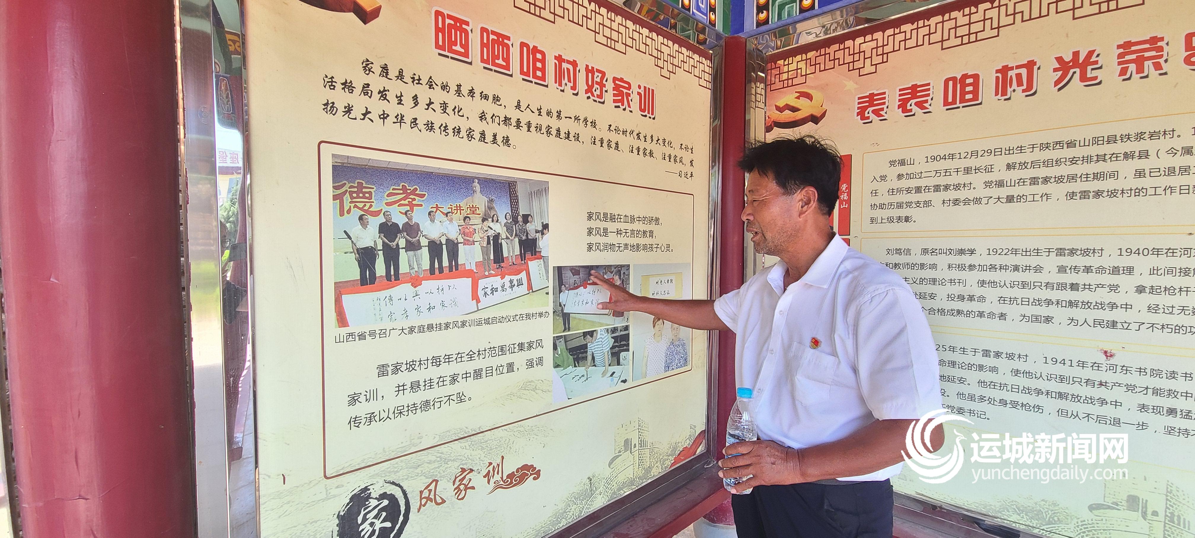 姚永计在雷家坡德孝文化长廊介绍该村近年来在德治方面的举措 记者 张君蓉 摄