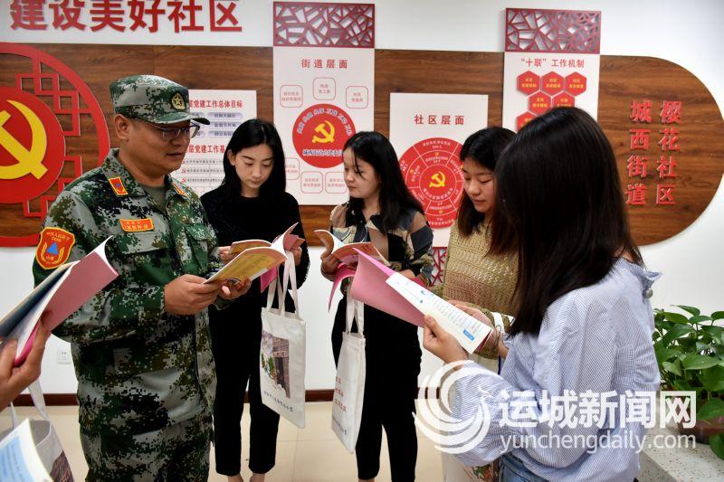 ▲9月17日,永济市人民防空办公室工作人员走进该市樱花社区,开展人防宣传活动。