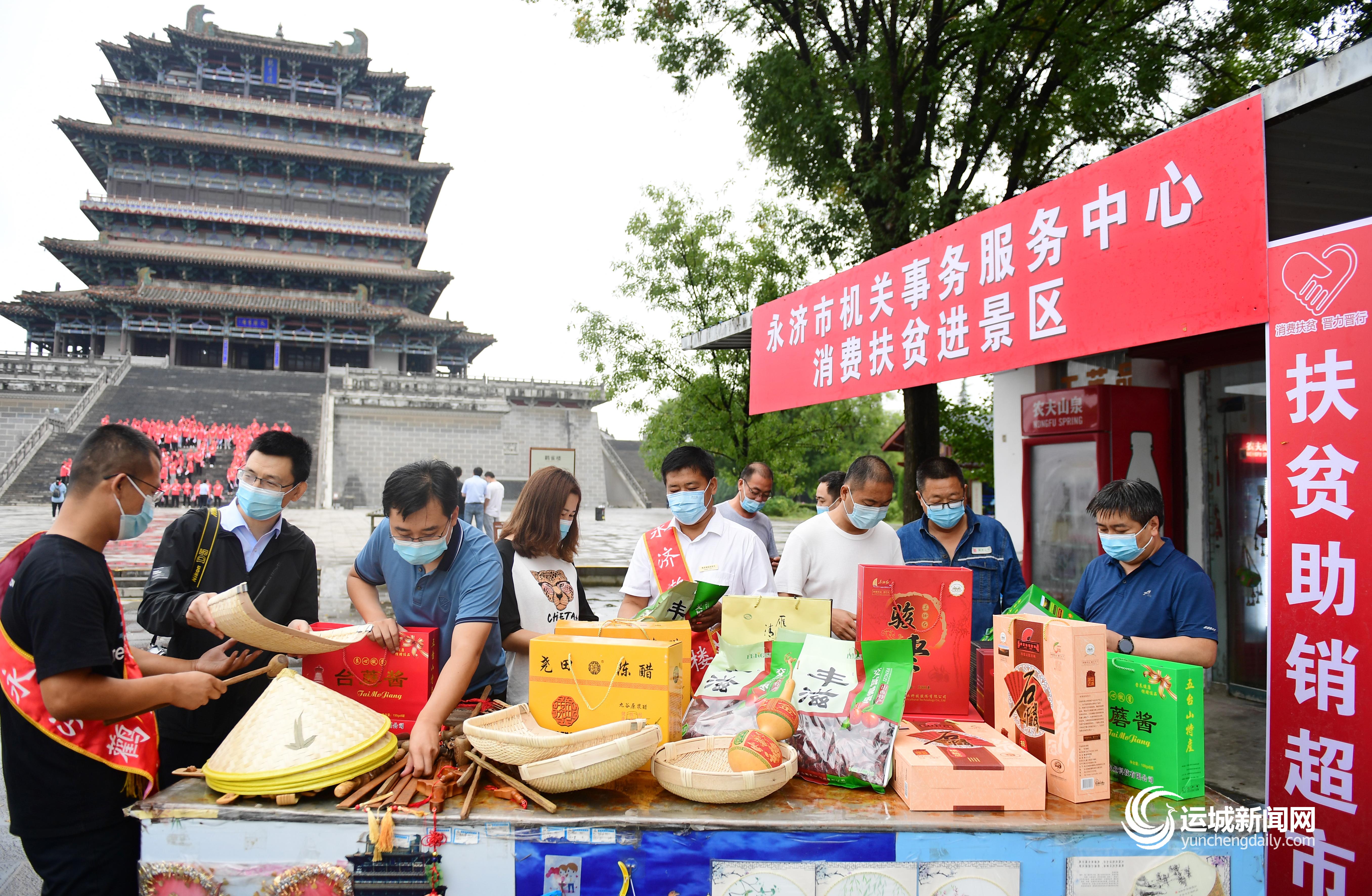“我为群众办实事”实践活动开展以来,为进一步调动全民参与消费扶贫的积极性,永济市机关事务服务中心依托当地丰富的旅游资源,将消费扶贫超市延伸到鹳雀楼、五老峰等景区,有效提升了消费扶贫的持久效应。