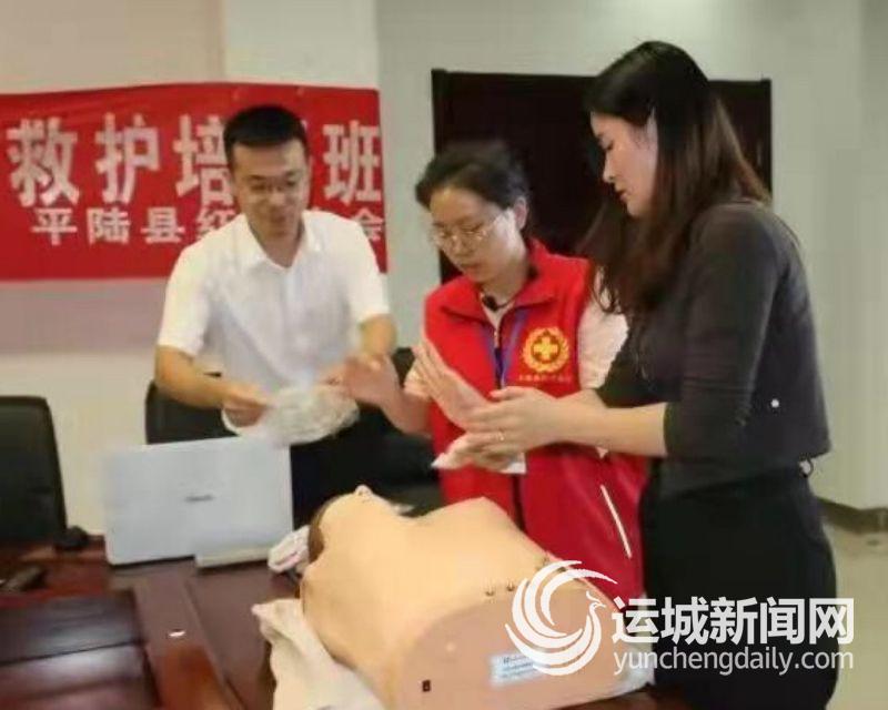 9月15日,平陆县红十字会工作人员走进平陆工商银行,普及初级救护知识。
