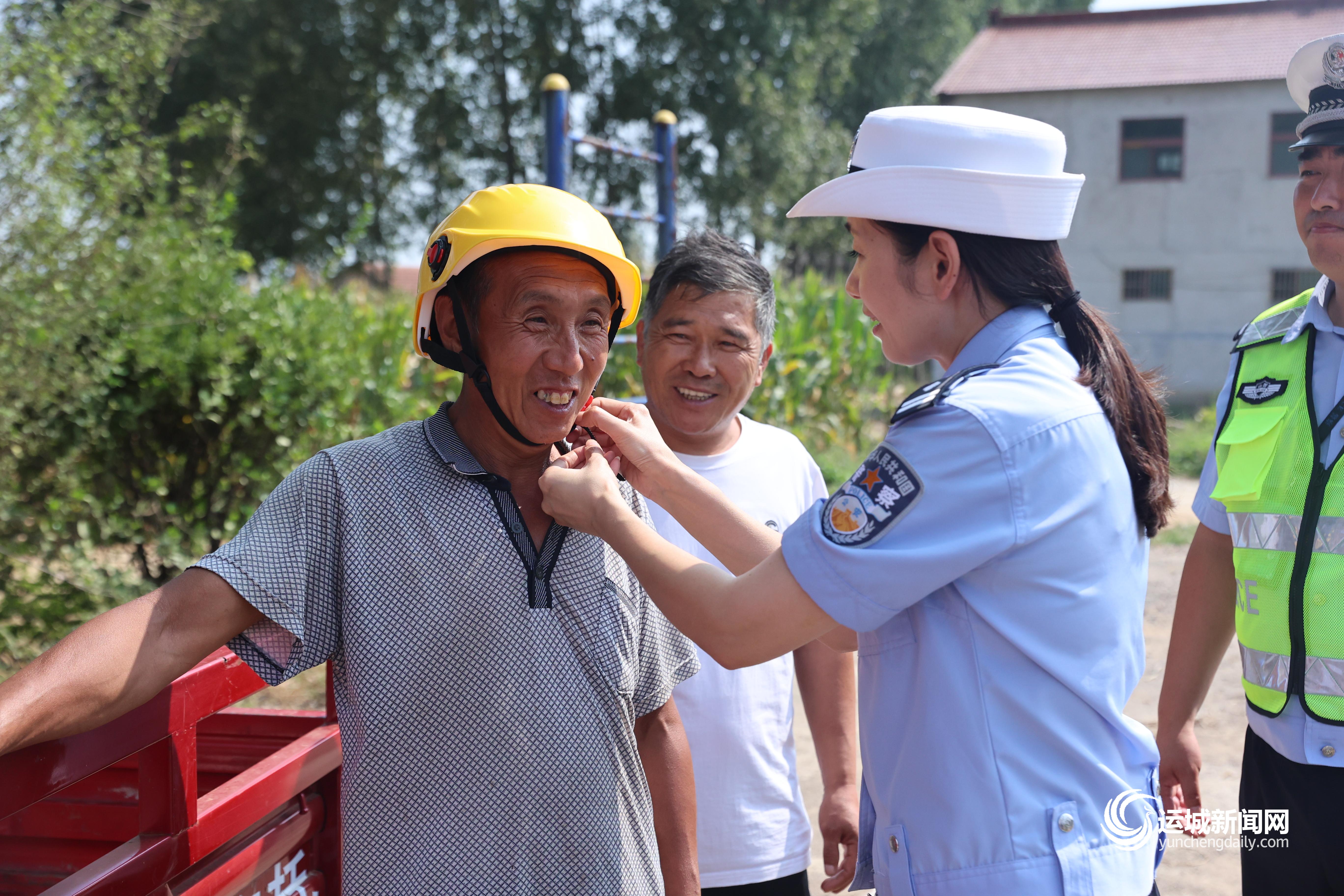 “大爷,我给您的三轮车配上‘严禁载人’的字样,希望您时刻绷紧安全弦,尤其是在骑农用三轮车时,一定要遵守交通规则,佩戴安全头盔。”9月17日,市公安局交警支队组织18名民警,走进绛县南樊镇西堡村,开展交通安全宣传“敲门行动”。