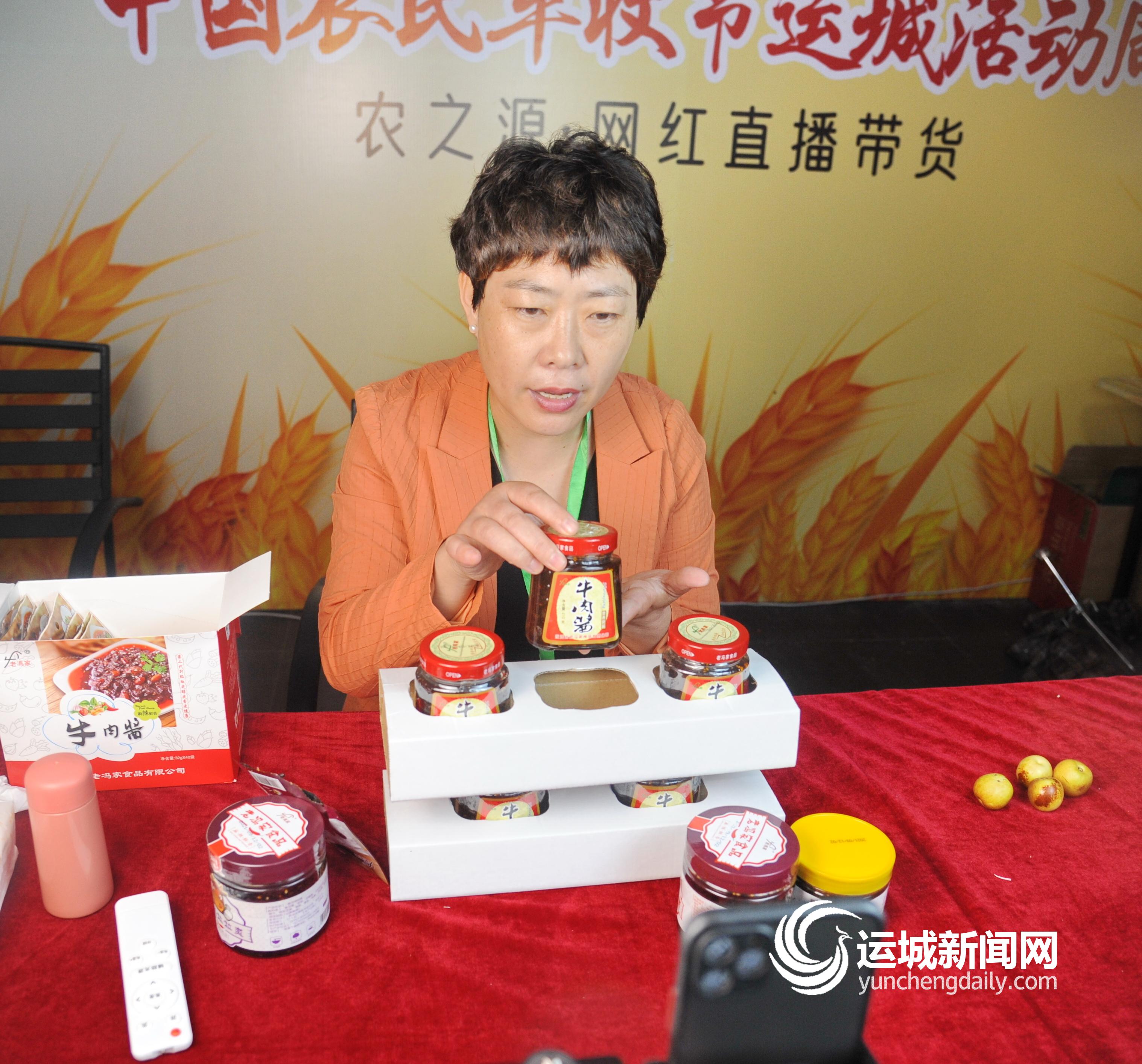 网红直播推介永济老冯家牛肉酱 见习记者 朱超逸丁 摄