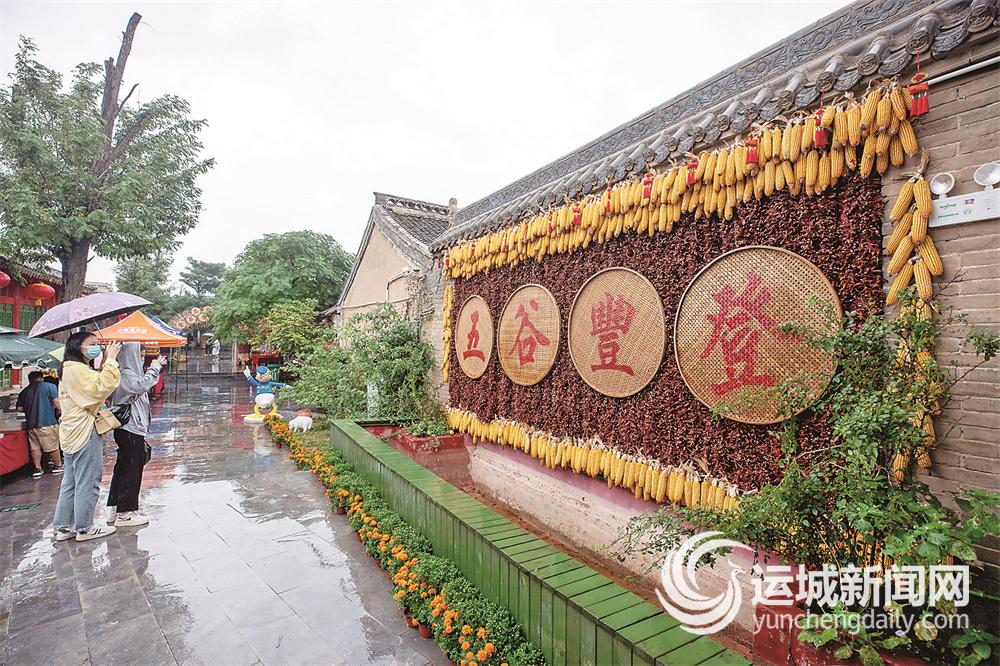 在岚山根·运城印象景区举办的2021·中国农民丰收节运城活动周启动仪式上,鼓乐表演《庆丰收》作为开场节目,以其欢快热烈的鼓点节奏点燃了现场观众的热情;歌伴舞《羊肉泡馍美太太》、临猗桌子戏《面对黄河一声吼》、稷山高台花鼓等节目接连上演,获得了现场观众的阵阵掌声。芮城芝麻和红薯、万荣滩地万亩水稻、临猗苹果和白莲、稷山板枣……活动主会场与部分县(市、区)分会场开展的视频连线,连同活动现场展示的关公面塑、闻喜花馍的制作技艺等,让广大市民全方位领略了河东大地丰收的景象、百万农民的风采、农耕文明的厚重、全面小康的喜悦和乡村振兴的前景,表达了广大干部群众听党话、感党恩、跟党走的共同心声。其间,与会领导还为100名荣获“运城农业丰收贡献奖”的10名代表和“运城市服务‘三农’奉献奖”的优秀党员代表颁奖。应接不暇的文化创意活动、VR全景呈现的名特优新农产品、极具地方特色的民俗表演……无不为广大群众捧出一场场展示黄河流域农耕文明发展历程和最新成果的“丰收盛宴”。