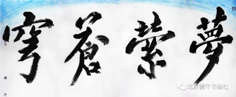 该书画社由临猗籍书法名家翟德年先生创办。翟德年先生书法造诣颇高,多年来热心公益,情系家国。在得知神舟十二号载人飞船成功着陆,聂海胜、刘伯明、汤洪波3位航天英雄安全顺利回家的第一时间,该书画社便组织成员创作了系列作品,既有《可上九天揽月,可下五洋捉鳖》(上图)、《梦萦苍穹》(下图)和《星空浩瀚无比,探索永无止境》《水调歌头》等书法,也有《梦萦苍穹》等篆刻。