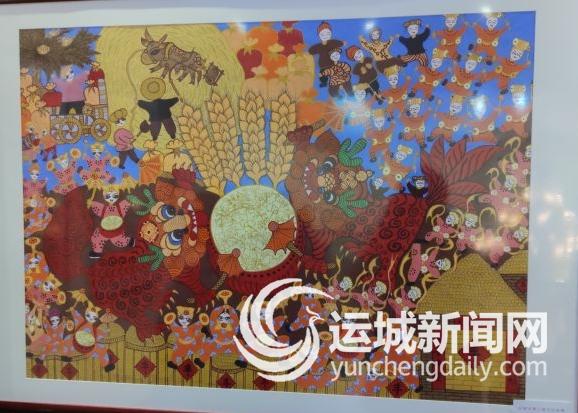 据了解,运城农民画生发于河东古老文明的文化环境,并呈现出勃勃生机。它从剪纸、绣花、木雕、泥塑、布玩具等民间艺术的古老传统中发展而来,以丰富多彩的生产生活为源泉,既继承和发扬了传统的民间文化,又融入了开放的时代意识,通过古朴童稚的人物造型、丰满充实的构图形式、高亢激昂的色彩效果,描绘民间习俗,讴歌现代生活。