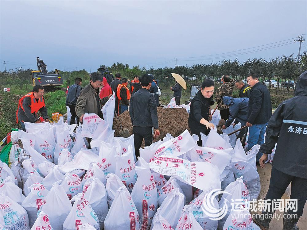 ▲永济市水利局工作人员在姚暹渠土桥段抢险 (运城市水务局供图)
