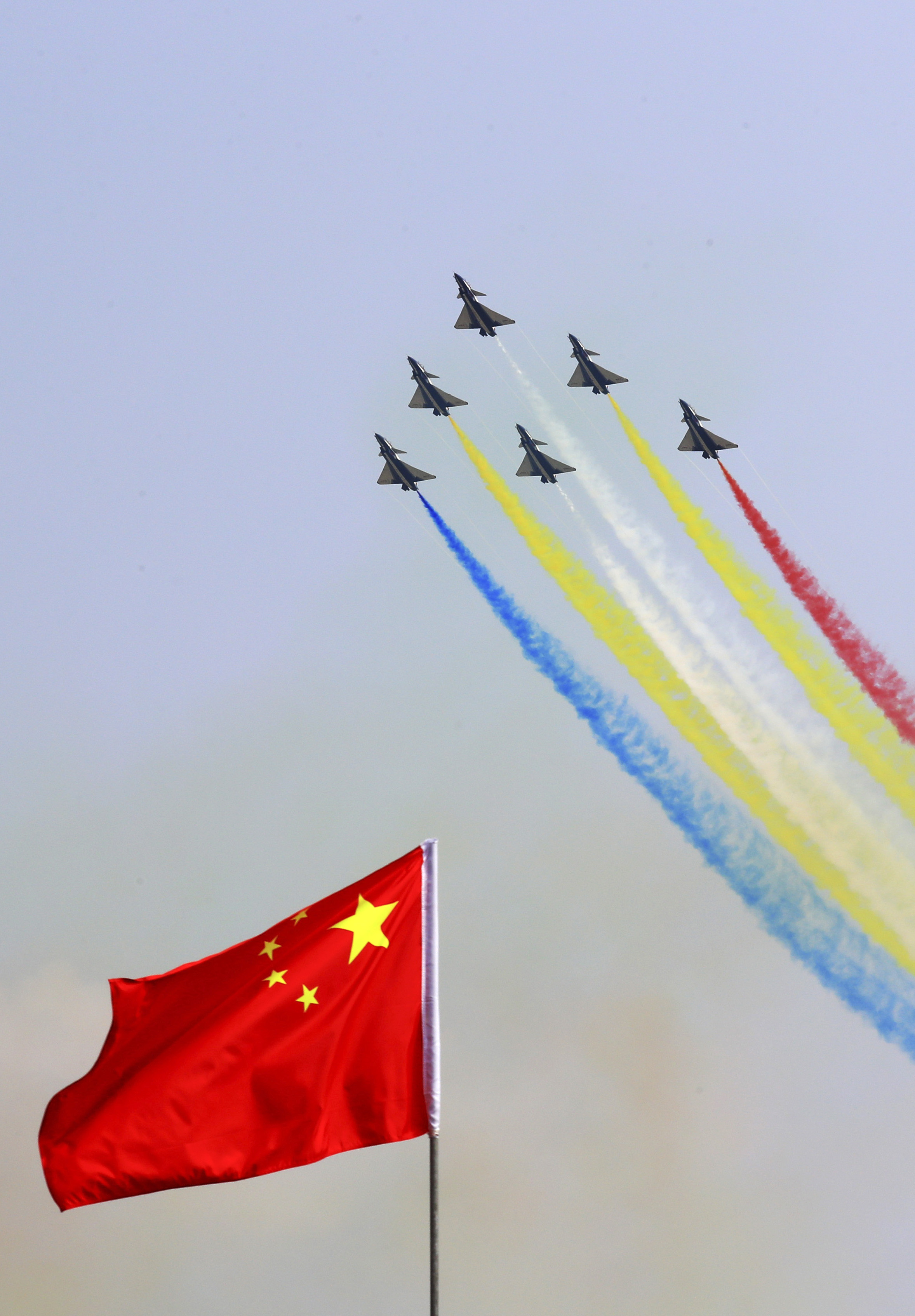 ▲9月28日,中国空军八一飞行表演队在第十三届中国国际航空航天博览会开幕式上进行飞行表演。 当日,第十三届中国国际航空航天博览会在广东珠海开幕。