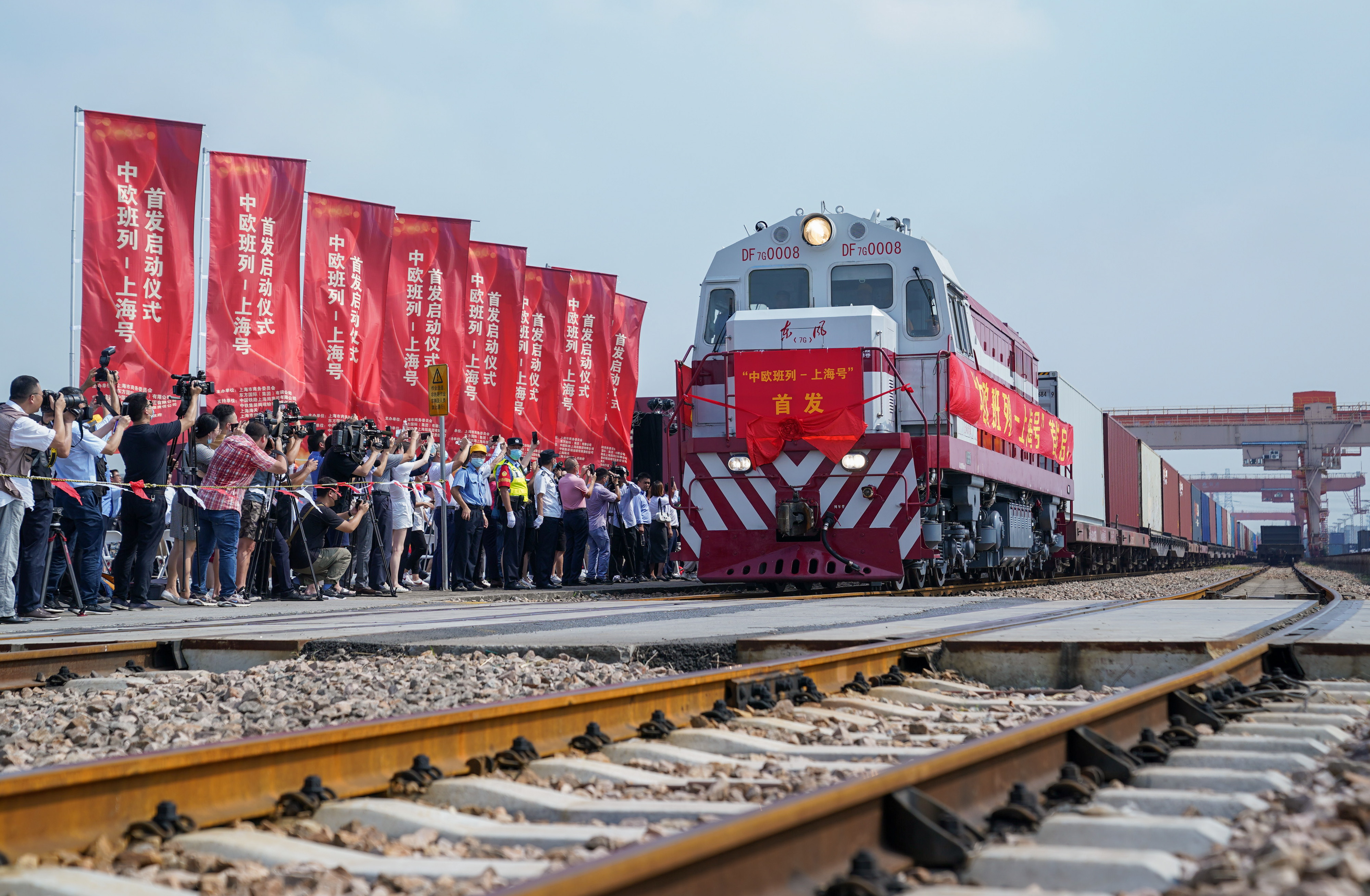 ▲9月28日,“上海号”中欧班列从上海开行。 发车!28日,“上海号”中欧班列首次从上海开行,驶向德国汉堡。 首发“上海号”列车装运着50个满载服装鞋帽、玻璃器皿、汽车配件、精密仪器等货物的集装箱,从上海一路向西,经阿拉山口出境,预计两周后抵达德国汉堡。 新华社记者 丁汀 摄