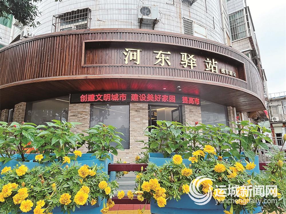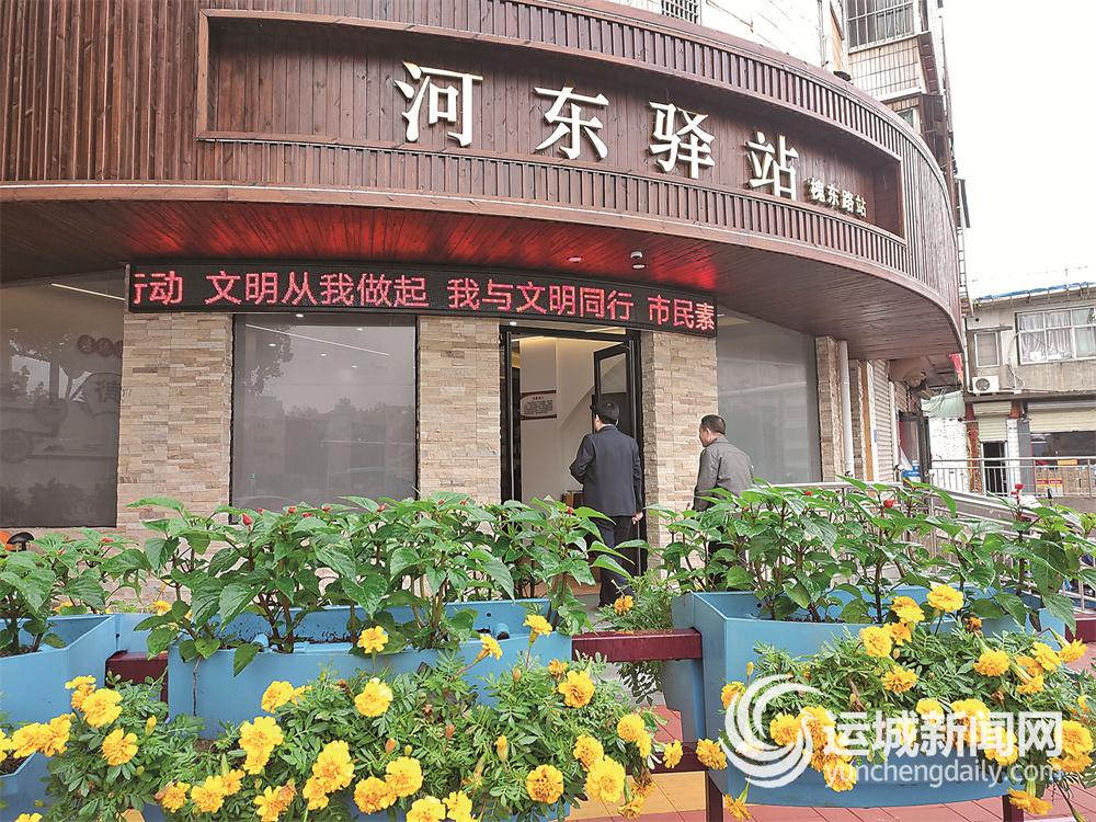位于市区河东东街与槐东路交叉口西北角的临街建筑焕然一新,兼具现代的简约气质和古河东历史厚重感,作为市区首个提升改造的“河东驿站”槐东路站,近期投入试运行。