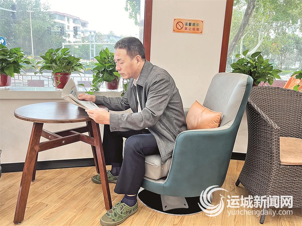 此外,驿站还配备有电子阅报机。当天,市民孙先生正坐在窗边看当天的报纸,他说:“我上午经常去公园散步,锻炼身体,最近天天下雨,也不方便去户外,驿站正好在我家附近,环境很好,所以天气不太好的时候,就过来看看书、读读报,工作人员的服务也很周到。”
