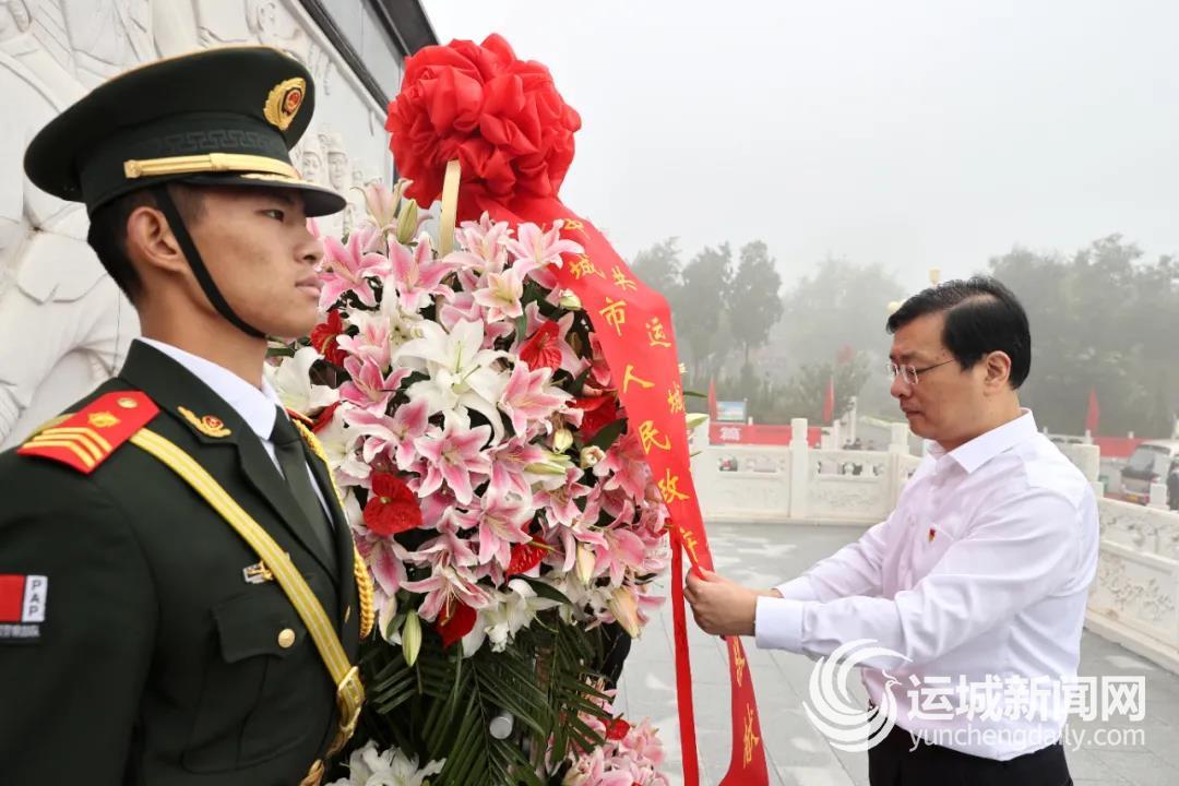 本报讯(记者 王文军)百年回眸,波澜壮阔;英魂不泯,浩气长存。9月30日,我市在盐湖区烈士陵园举行烈士纪念日公祭活动,深切缅怀革命先烈的丰功伟绩,传承革命精神,赓续红色血脉。市委书记丁小强,市委副书记、政法委书记王立刚,市人大常委会主任邓雁平,市政协主席张润喜等市四大班子领导与社会各界代表一起参加公祭活动。