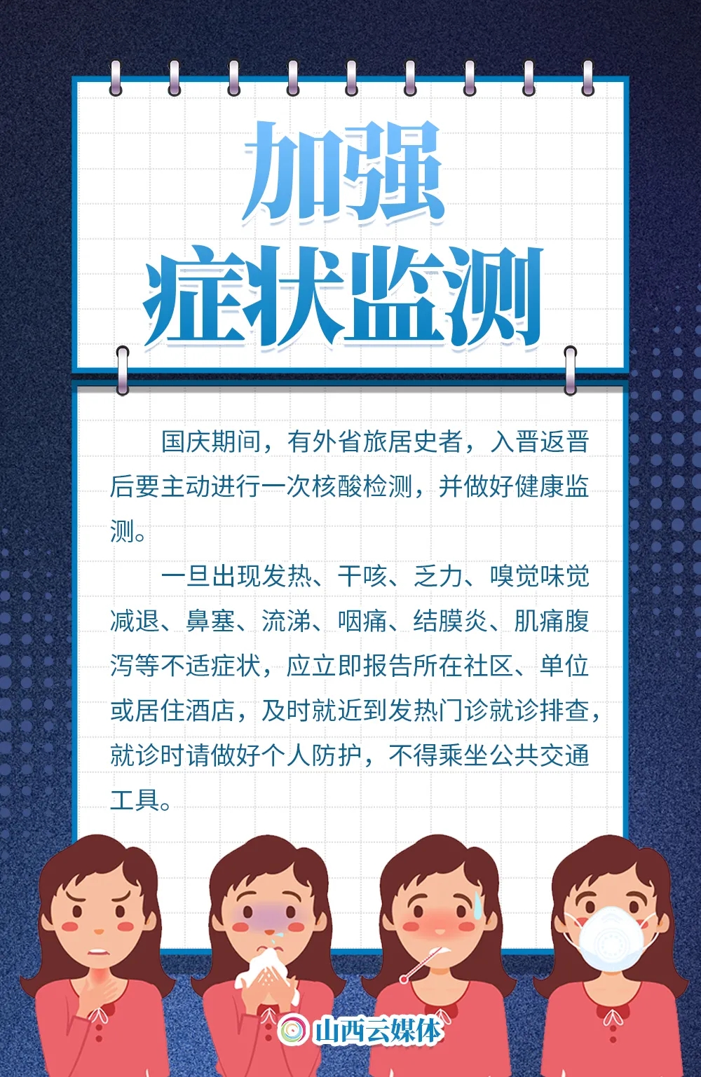 10月3日,新疆伊犁州霍尔果斯市在三天1次常规核酸检测中,发现2例新冠肺炎无症状感染者。为巩固我省来之不易的疫情防控成果,10月4日,山西省疫情防控办发布紧急提示。