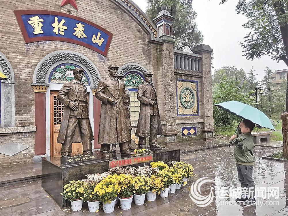 ▲10月6日下午,家长带着孩子冒雨来到运城烈士陵园,祭奠先烈,致敬英雄。