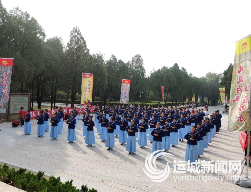 国庆期间,芮城县第一职业学校学生在永乐宫景区为游客展示传统文化表演。李宏伟 摄