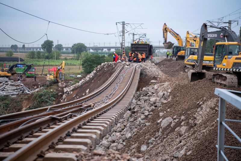 险情发生后,路地双方高度协同,人员、机械、物料快速到位。1500余人的抢险队伍昼夜奋战,动用大型机具160余台,抢卸回填片石、石砟、废旧轨枕等100多辆车皮,千方百计抢通线路。经过连续奋战,昌源河铁路桥上行线被冲垮的桥台尾部路基得到修复,经机车压道试验,线路已恢复通车条件。