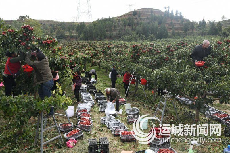 10月9日,闻喜县郭家庄镇石键村村民在采摘山楂。
