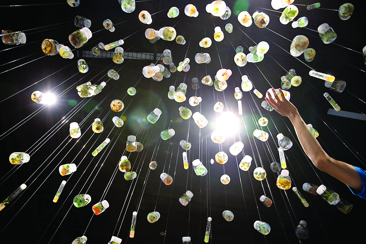 ▲10月10日,在举行发布会的中科院生物多样性成果展现场,观众参观由种子发育而来的多样性植物样品。