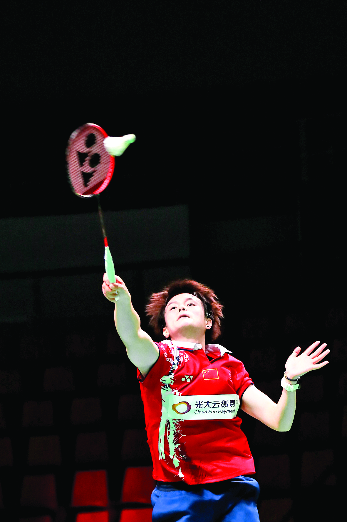 10月9日,中国队选手王祉怡在女单比赛中以2比0战胜加拿大队选手陈俊灵。 当日,在丹麦奥胡斯举行的尤伯杯羽毛球团体赛D组比赛中,中国队以5比0战胜加拿大队。 新华社记者 张铖 摄