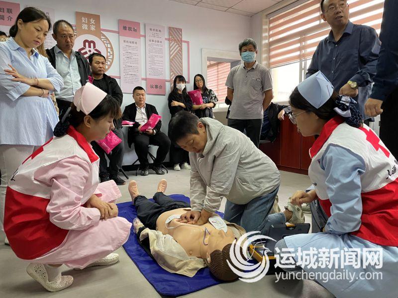 ▲近日,盐湖区河东西街社区联合盐湖区红十字会,举办应急救护知识讲座,30余名各商场安全员、退役军人等参加。