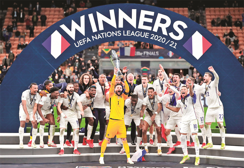 当日,在意大利米兰进行的欧洲国家足球联赛决赛中,法国队以2比1战胜西班牙队,夺得冠军。