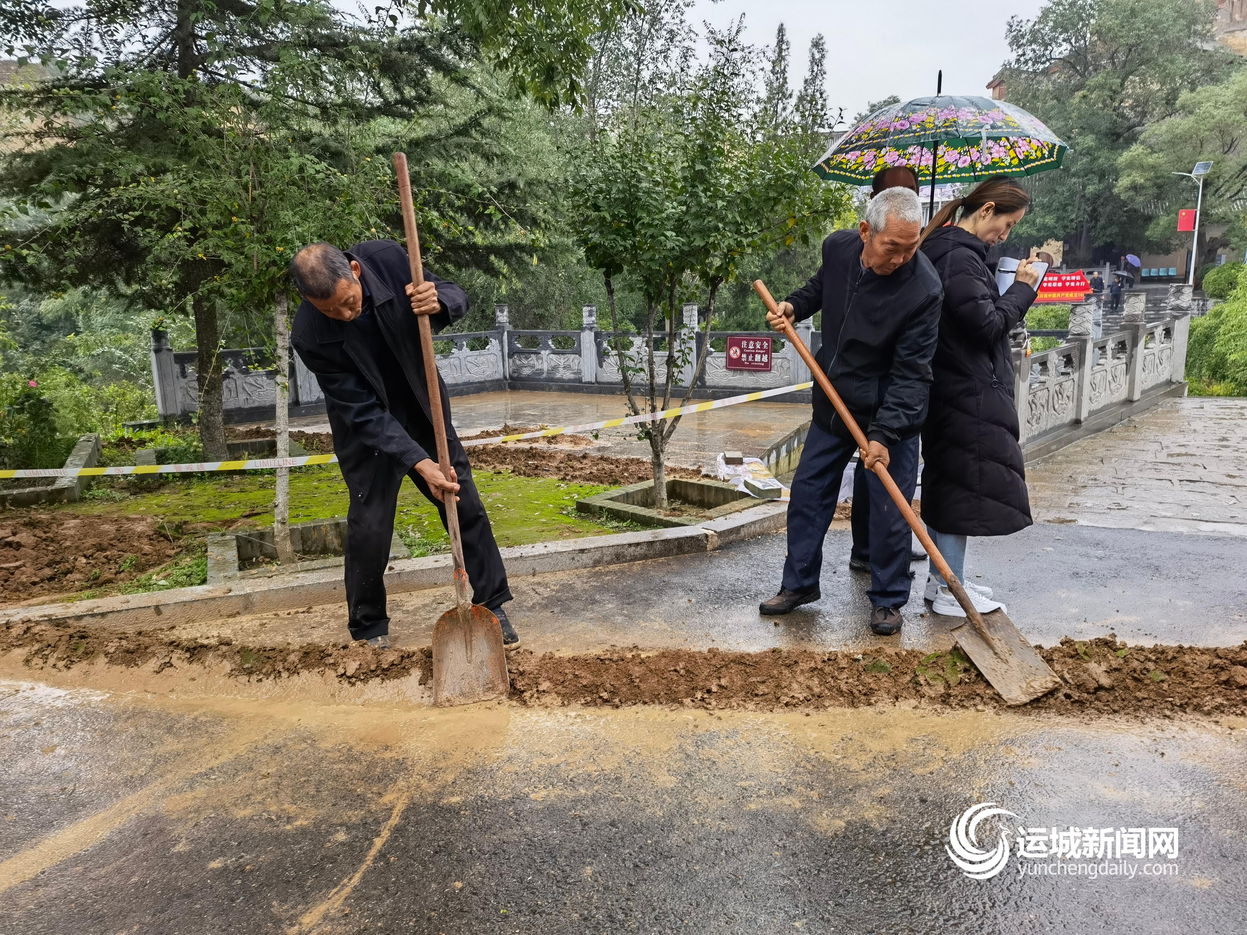 夏县中共河东特委革命活动旧址(堆云洞)门口堆起土埝,导引水流进入排水沟。