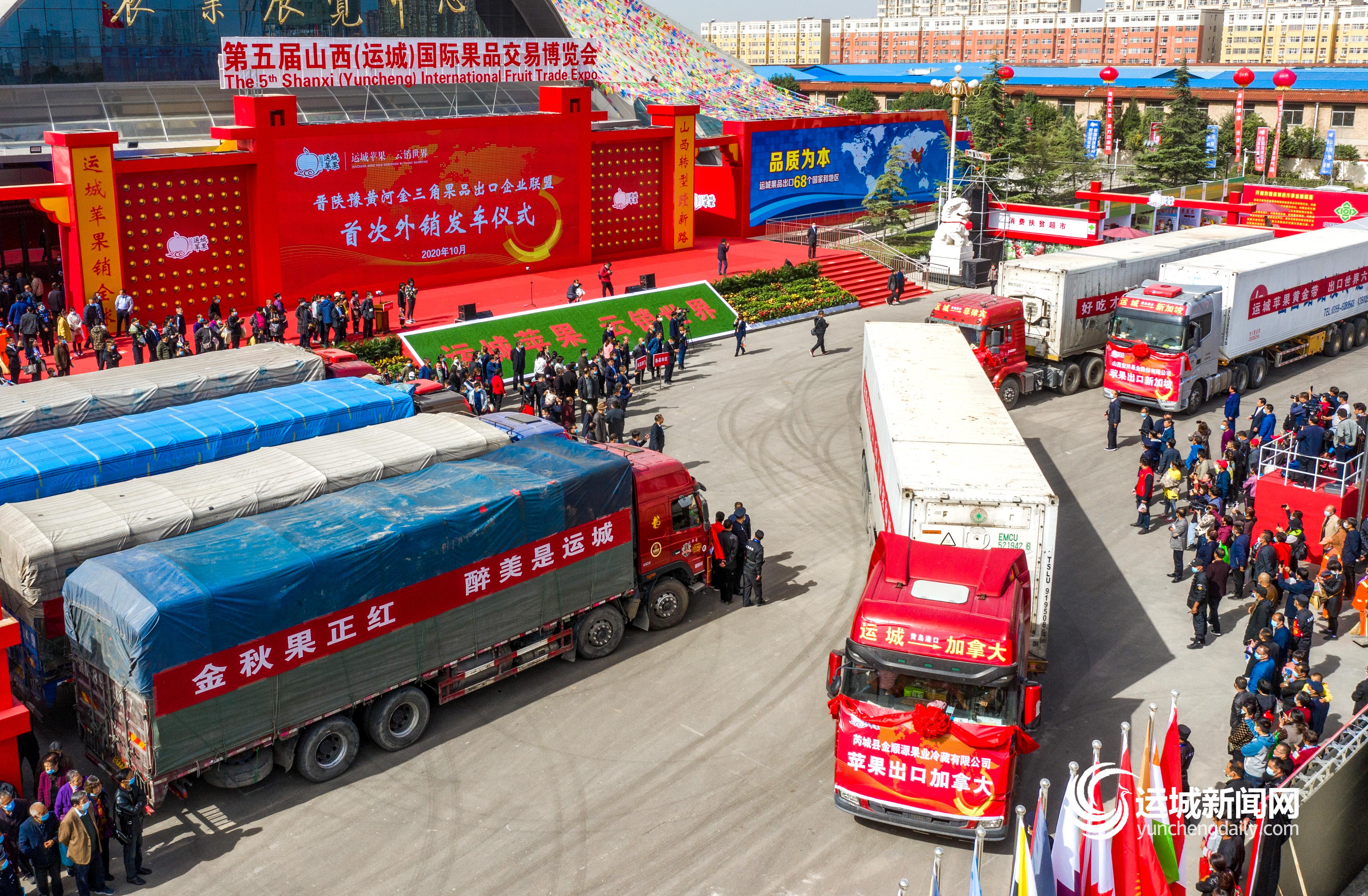 ▲晋陕豫黄河金三角果品出口企业联盟首次外销发车仪式现场 记者 薛 俊 摄