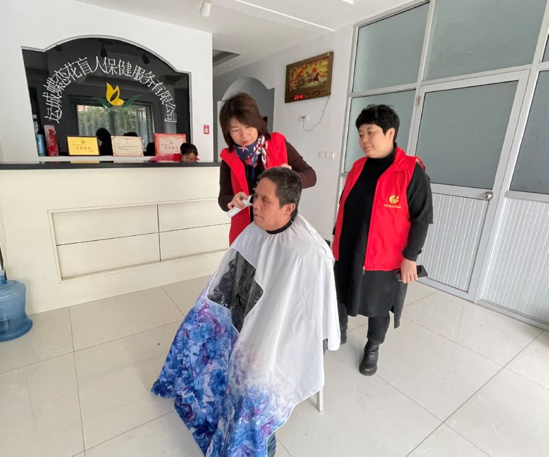 当日上午,志愿者来到居民家里,边聊天边把剪刀、梳子、电推子等理发设备摆放整齐,根据老人需求操作。看着镜子里自己的新发型,他们一个个脸上都笑开了花,并连声赞叹服务好。