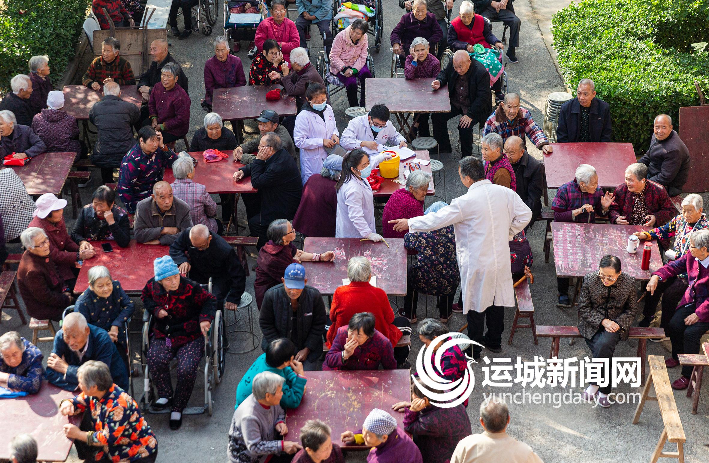 10月13日,永济市开张镇东开张村日间照料中心为70岁以上的老人300余人义务做健康体检,教老年活动操,并表演文艺节目,让老人们在开心欢乐中喜度重阳佳节。