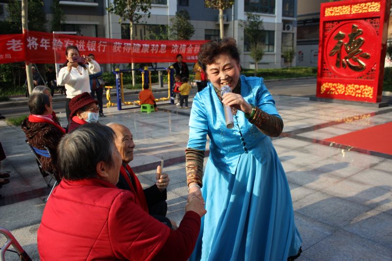 ▲10月13日,在盐湖区南城街道银湖街社区的德孝文化广场上,该社区老人欢聚一堂,接受来自社区的祝福。